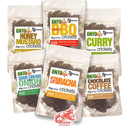 Cricket Sample Pack – Six Flavored Roasted Edible Insects, 15g Packs Each