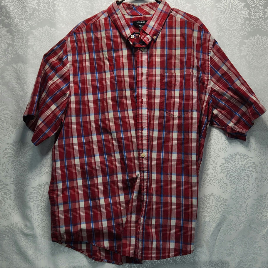 George Red Plaid Short Sleeved Button Up Size XXL *