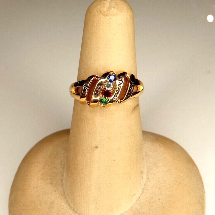 GP Pat Pend Gold Tone Rhinestone Engraved Ring Size 7.25 (10c2)