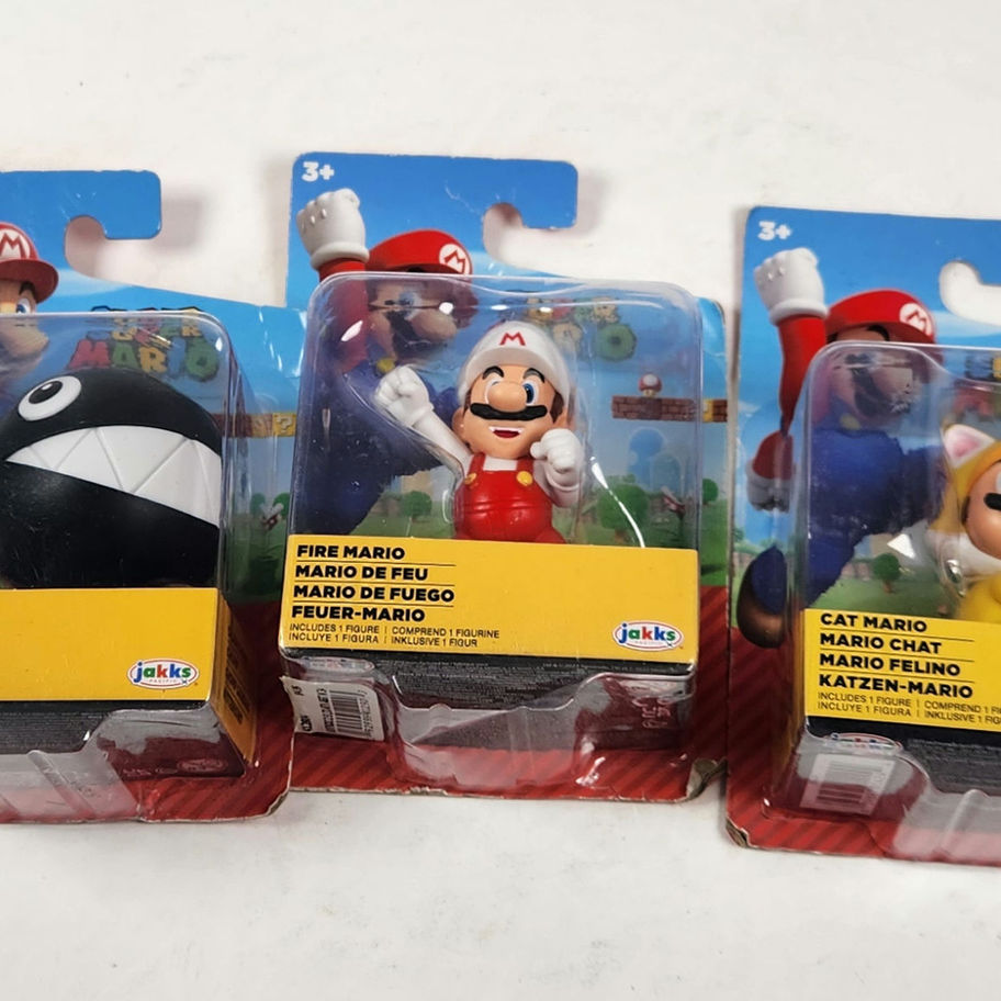 Lot of 3 Super Mario Figures Fire Mario, Cat Mario, Chain Chomp IN BOXES