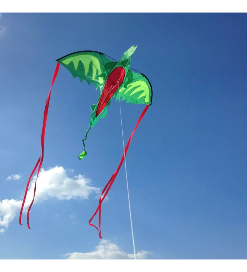 Giant, colorful dragon-shaped kite with a 62-inch wingspan