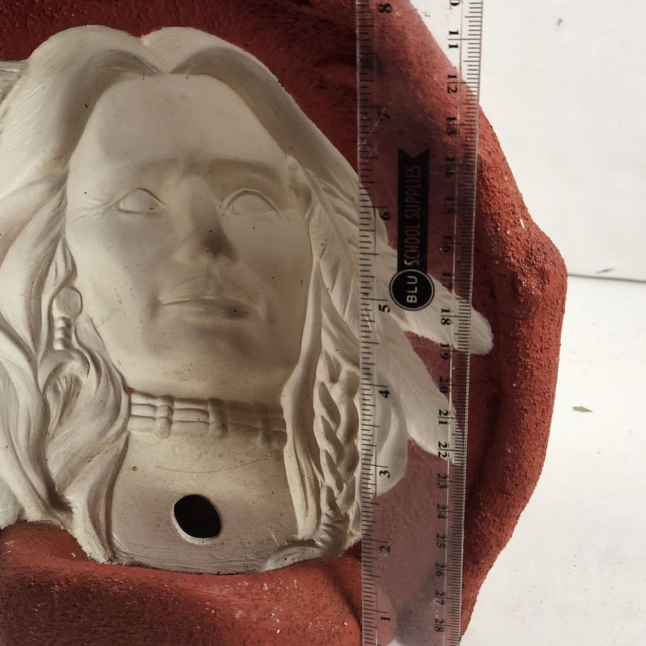 Red and White Clay Native American Turning Head Illusion Decoration